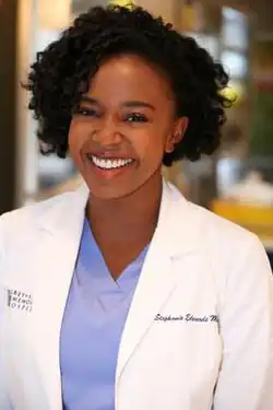 Stephanie Edwards, M.D., is a fictional character from the medical drama television series Grey's Anatomy, which airs on the American Broadcasting Company (ABC) in the United States. The character was created by series producer Shonda Rhimes and portrayed by actress Jerrika Hinton from 2012 to 2017. Introduced as a surgical intern at the fictional Seattle Grace Mercy West Hospital, later renamed Grey Sloan Memorial Hospital, Stephanie works her way up to the resident level alongside fellow intern and friend, Jo Wilson (Camilla Luddington).