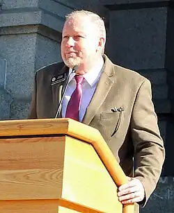 Humphrey addressing an audience in 2017. | |