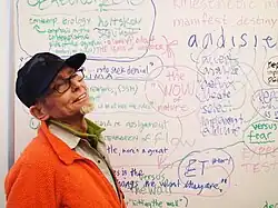 In 2000, Holt co-curated the first Cooper Hewitt National Design Triennial, "Design Culture Now," with Donald Albrecht and Ellen Lupton.[4][50][51] The exhibition marked a boundary-blurring, digital-era design shift away from "the ubiquitous 'black box' of minimalism"[8] and toward human, tactile and emotional work reflecting entertainment culture and the growing visual literacy of consumers.[52][19][53] New York Times critic Herbert Muschamp wrote, "The triennial is an explosion: an attack on the walls between individual design disciplines and the barriers that separate design from everything else. ... [Its] organizers create a credible mythology for design today: protean, expansive, filled with deep reserves of historical meaning, an art that leaves no area of consciousness unexplored."[4] The same year, Holt co-curated (with Aaron Betsky) "Design Afoot: Athletic Shoes, 1995-2000" at SFMOMA—believed to be the first exhibition devoted to sneaker design—marking what he called "a golden age in sneaker design."[9][54]