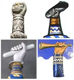 - ^ As seen on framed mural monument in Exford Church, Somerset, to Major Morland Greig (1864–1915), of Edgcott, Exford, Master of the Devon & Somerset Staghounds, killed in action at Gallipoli. The badge is also shown, but with the hand grasping a palm frond, sculpted on the mural monument in the Church of St Giles in the Wood, Devon, to Captain John Oliver Clemson (1882–1915) of Stevenstone, also killed fighting with the same regiment at Gallipoli.