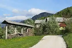 The local church is dedicated to the Holy Cross and dates to 1751, when the old church in the center of the village was demolished and the current church was built on a small hill above the village.[4] The church features Stations of the Cross painted by Leopold Layer (1752–1828).[3]