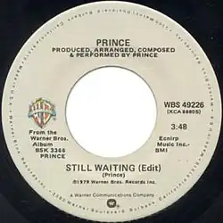 "Still Waiting" was the third US single from Prince's second album, Prince. It was Prince's first ballad to be released as a single and was mildly popular on the R&B chart, reaching number 65.[2] The ballad speaks from the perspective of a young man who has not yet found love but yearns for it. The track is mainly piano, acoustic guitar and synth-based and was often played live with extended instrumental solos and audience teasing. The song is a more traditional R&B ballad, before Prince established himself with trademark sexual romps like "Do Me, Baby" and "International Lover".