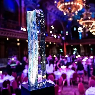 The international Stockholm Junior Water Prize (SJWP) is a competition that encourages young people's interest in water and environment issues. Beginning in 1995, the award is given annually for an outstanding water project by a young person or a small group of young people at a ceremony held during the World Water Week in Stockholm. The first two years the competition was held on a national level in Sweden. From 1997[2] onward the competition has been held in its current international format. The international Stockholm Junior Water Prize winner receives a US$15,000 scholarship and a blue crystal sculpture.