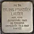 František Laušer | Kostelní 875/6 | Dr. Ing. František Laušer was born on 17 December 1889 in Horní Ročov. His parents were Josef Lauscher (1858-1912) and Bertha née Wolf (1863-1940). He had two sisters, Marta (born 1883, later Kronberger) and Marie (born 1885, later Jelinek). He was married to Marie Laušer. His last residence before deportation was in Prague II, Hálkova 8. On 6 March 1943 he was deported to Theresienstadt concentration camp by transport Cv. His transport number was 27 of 1,022. He was murdered on 19 May 1943 in Theresienstadt.[15][16][17]