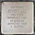 Robert Laš, also Robert Lasch, was born on 19 June 1895 in Černovice. His parents were Salamon Lasch from Bradáčov and Elisabeth née Peschek. He had ten half brothers and half sisters, all born by the first wife of his father, Anna née Peschek, the sister of his mother.[10] He was married to Gabriela. On 16 July 1942, he and his wife were deported to Theresienstadt concentration camp by transport AAr. His transport number was 503 of 1,000. Three months later, on 6 October 1942, the couple were deported to Auschwitz concentration camp by transport Eo. His transport number was 1044 of 1,550. They were both murdered by the Nazi regime.[11][12] |