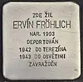 ERVÍN FRÖHLICH BORN 1903 DEPORTED 1942 TO THERESIENSTADT 1943 TO AUSCHWITZ MURDERED |