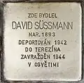 DAVID SÜSSMANN BORN 1893 DEPORTED 1942 TO THERESIENSTADT MURDERED 1944 IN AUSCHWITZ |