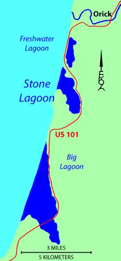 Stone Lagoon (Yurok language: Chah-pekw O'Ket-toh) is the second of three similar lagoons within Humboldt Lagoons State Park, along the coast of Humboldt County, California.