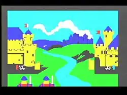 Stone Sling's gameplay consists of aiming the catapults at each other's fortress in a colorful environment with yellow walls, green valleys, blue mountains, and a bright blue river in between the two fortresses. As said above the game can be played among two different people with its multiplayer capabilities.