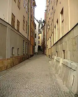 - ^ a b "Innerstaden: Gamla stan". Stockholms gatunamn (2nd ed.). Stockholm: Kommittén för Stockholmsforskning. 1992. pp. 72–73. ISBN 91-7031-042-4.