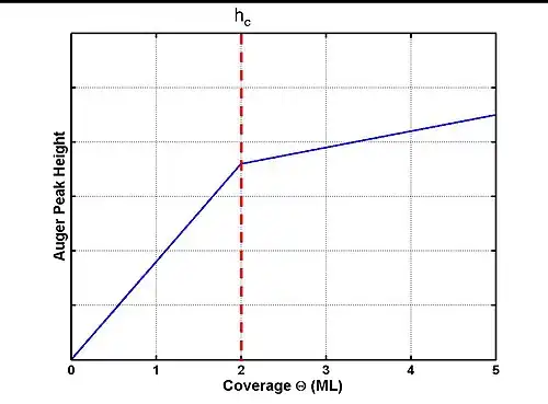 Analytical techniques such as Auger electron spectroscopy (AES), low-energy electron diffraction (LEED), and reflection high energy electron diffraction (RHEED), have been extensively used to monitor SK growth. AES data obtained in situ during film growth in a number model systems, such as Pd/W(100), Pb/Cu(110), Ag/W(110), and Ag/Fe(110), show characteristic segmented curves like those presented in figure 4.[1][2][11] Height of the film Auger peaks plotted as a function of surface coverage Θ, initially exhibits a straight line, which is indicative of AES data for FM growth. There is a clear break point at a critical adsorbate surface coverage followed by another linear segment at a reduced slope. The paired break point and shallow line slope is characteristic of island nucleation; a similar plot for FM growth would exhibit many such line and break pairs while a plot of the VW mode would be a single line of low slope. In some systems, reorganization of the 2D wetting layer results in decreasing AES peaks with increasing adsorbate coverage.[11] Such situations arise when many adatoms are required to reach a critical nucleus size on the surface and at nucleation the resulting adsorbed layer constitutes a significant fraction of a monolayer. After nucleation, metastable adatoms on the surface are incorporated into the nuclei, causing the Auger signal to fall. This phenomenon is particularly evident for deposits on a molybdenum substrate.