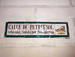 Some streets also used to be named for the presence of singular buildings (Palace, Cathedral) or various establishments (Hospital, New Baths). Tradition has it that the name Carassa Street comes from a carota on the corner between this street and Mirallers Street, which announced a nearby brothel.[39]