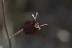 Streptanthus glandulosus subsp. niger is an endangered subspecies of flowering plant within the family Brassicaceae.[1] Like other genus members, this herb has wavy petal margins with perimeter calluses that discourage larval herbivory.[2] This plant is endemic to the Tiburon Peninsula[3] of Northern California, and occurs at elevations below 150 m on serpentine grasslands.[4] The common name for this subspecies is Tiburon jewelflower[5] or black jewelflower. This annual herb blooms in May and June and displays dark purple sepals. The etymology of this genus scientific name derives from the Greek word streptanthus, meaning twisted flower, with reference to the notable wavy margins of the petals. The subspecies name niger relates to the color of the seeds being black, although an alternate account cites the dark color of the petals as the source of the appellation.