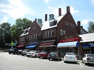 Strong's Block is a historic commercial building at 1637–1651 Beacon Street in the center of Waban Village, in the city of Newton, Massachusetts. Built in 1896, this 2+1⁄2-story brick Flemish Revival structure is one of a small number of surviving 19th century commercial blocks in the city. The building was designed by Waban resident Lewis H. Bacon for William Strong, another local resident, who sought to capitalize on the construction of the nearby Circuit Railroad (now the MBTA Green Line D branch).[2]