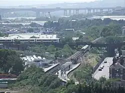 Strood railway station serves the town of Strood in Medway, England.[1] It is on the North Kent Line[2] and is also a terminus of the Medway Valley Line.[3] It is 31 miles 11 chains (50.1 km) down the line from London Charing Cross.
