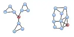 If we compare two nodes, node A is more likely to get novel information than node B, even though they have the same number of links. This is so because nodes connected to B are also highly connected between each other. Therefore, any information that any of them could get from B, it could easily get from other nodes as well. Furthermore, the information, which B gets from different connections, is likely to be overlapping, so connections involving node B are said to be redundant. On contrary, the position of node A makes it serve as a bridge or a ‘broker’ between three different clusters. Thus, node A is likely to receive some non-redundant information from its contacts. The term ‘structural holes’ is used for the separation between non-redundant contacts. As a result of the hole between two contacts, they provide network benefits to the third party (to node A).
