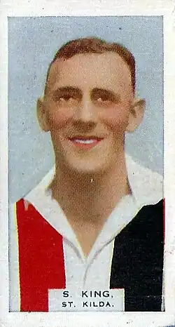 Having been recruited from the University Blacks, King played his first VFL match for St Kilda in 1931 and the following year was appointed club captain. When Charlie Hardy left the Saints seven games into the 1932 season he acted as a caretaker coach for the rest of the year. King played mostly as a defender and in his three seasons managed 43 games.