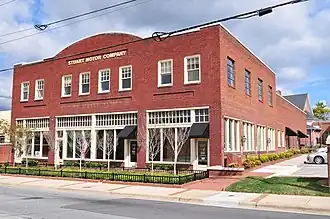 Stuart Motor Company is a historic automobile showroom building located at Kernersville, Forsyth County, North Carolina. It was built in 1926, and is a utilitarian brick building with a two-story front section and a tall one-story rear section. The building previously featured "STUART MOTOR COMPANY" in Art Deco lettering.[2]