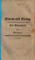 In the autumn of 1776 Klinger wrote a comedy titled simply Wirrwarr ("confusion", "hubbub"). At that time he was already a well-known playwright; the year before, he had won a prize of 20 Louis d'or from the Ackermannschen Theatertruppe for his tragedy Die Zwillinge (de). Klinger had followed Goethe to Weimar. Christoph Kaufmann (de) suggested the title Sturm und Drang ("storm and urge", "storm and stress") in a letter to Klinger.[1] The piece was created in the year that is commonly seen as the high-water-mark of the Sturm und Drang movement.