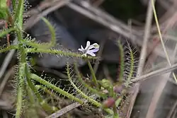 Stylidium diffusum is a species of dicotyledonous plant in the family Stylidiaceae. It is an annual plant that grows from 3 to 14 cm tall. Linear or deltate leaves, about 5-20 per plant, are scattered along the elongate, glabrous stem. The leaves are generally 2–8 mm long and 0.4-1.7 mm wide. Petioles and scapes are absent. Inflorescences are 1.5–8 cm long. Flowers are pink, white, or mauve and bloom from March to September in the southern hemisphere. S. diffusum's distribution is scattered along the east coast of Queensland and has populations recorded from Elcho Island and Groote Eylandt in the Northern Territory in Australia. It has been recorded as growing in Melaleuca viridiflora woodlands, soakage areas in eucalypt woodlands, on swamp edges, and on damp sandy creekbanks. S. diffusum is most closely related to S. tenellum. Its conservation status has been assessed as data deficient.[1]