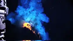 At shallow depths it is common for submarine eruptions to be explosive due to the reaction between volatiles in the magma and water which generates a significant quantity of steam.[7] These eruptions described as Surtseyan are characterised by large quantities of steam and gas and creating large amounts of pumice.[8] This activity has occurred in many locations. An example is Fukuto-Okanoba near Japan. This activity has been observed for almost a century and causes discoloured water, jets of steam and ash, and pumice is found floating in the surrounding water.[9]