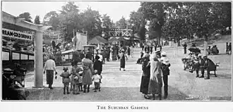 Suburban Gardens Amusement Park offered many attractions for its visitors.[5] While the dance pavilion was considered the main attraction, Suburban Gardens also operated: