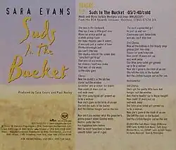 "Suds in the Bucket" is a song written by Billy Montana and Tammy Wagoner and recorded by American country music singer Sara Evans. It was released in May 2004 as the third single from Evans' 2003 album Restless. It became her third number-one single on the US Country charts, and her first since "Born to Fly" in early 2001. It was certified Platinum by the RIAA on August 18, 2023.