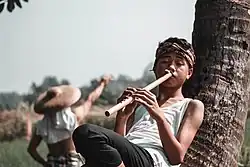 In Brunei, the suling today is played during a cultural festival and other events together with other Bruneian traditional instruments especially the Gulintangan.[6] While in East Malaysia, especially in Sabah with a wide variety of aerophone,[7] the instrument is played by all the interior ethnic groups in the state of Kadazan-Dusun, Murut, Rungus and Lun Bawang/Lundayeh.[8] In Sarawak, the suling is mostly played by men in a Dayak people longhouse.[9]