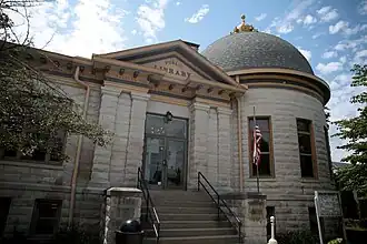 The Sullivan County Public Library serves residents of Sullivan and Sullivan County, Indiana. A public library, it has been in operation since 1905. In 1899, the "Woman's Club" began a drive to establish a Carnegie library in the city of Sullivan, Indiana. It was officially completed in January 1905, with a cost of $10,000, and was then open to the public. It is a two-story, Bedford limestone structure, complete with a dome. There have been several different changes to the library throughout the years, which has included a new addition to the structure in 1994, which also included an elevator. In the late 1960s and the early 1970s, the Merom, Shelburn, Farmersburg, Dugger, and Carlisle libraries merged with the Sullivan Library, and became a part of the Sullivan County Public Library system.[1]