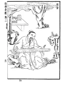 Sun Deng (孫登; fl.230–260 CE) was a Daoist sage-recluse, a zitherist, and allegedly the last master of transcendental whistling. Chinese literature has various anecdotes about Sun Deng refusing to teach the musicians Ji Kang (223–262) and Ruan Ji (210–263), two of the iconoclastic Seven Sages of the Bamboo Grove.