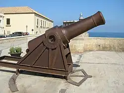 Sunchado cannons (or zunchado), meaning wrapped, belted, banded, or built-up, described Spanish coastal artillery weapons constructed in the third quarter of the 19th century. Some, such as the 150mm (5.9") caliber rifled guns, were breech-loading. However others, such as the Model 1872 210mm (8.3") rifled howitzers, were muzzle-loading.[1]