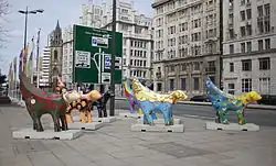 In 2010, one of these sculptures was sent to the 2010 World Expo in Shanghai, China. This sculpture was named Archie as it featured many designs from architectural details from the city. The sculpture was gifted by the city, and now resides in the Shanghai World Expo Museum. This sculpture was made in the medium of mosaic and was designed and made by Debbie Ryan, a local artist from the city of Liverpool.