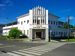 The Supreme Court of Palau is the highest court of Palau. Article X of the Constitution vests the Supreme Court with judicial power and provides for its operation and jurisdiction.[1] The Supreme Court is divided into a Trial Division and an Appellate Division. Cases are adjudicated by a single justice in the Trial Division and appeals are heard by panels of three different justices in the Appellate Division. The Trial Division of the Supreme Court has jurisdiction over all civil matters over $10,000 and criminal matters not assigned to the Court of Common Pleas and adjudication of land interests. The Supreme Court also handles disciplinary and other special proceedings. The Supreme Court consists of Appellate and Trial Divisions. Chief Justice, Oldiais Ngiraikelau, and Associate Justices John K. Rechucher and Fred M. Isaacs are currently serving in the former division, while Presiding Justice, Kathleen M. Salii and Associate Justice Lourdes F. Materne serve in the latter one. Other judges are invited to sit on an as-needed basis as Associate Justices Pro Tem or Part-Time Associate Justices.[2]