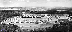 General Lyman Lemnitzer, SACEUR at the time, had hoped that SHAPE could be located near to NATO Headquarters, as had been the case in Paris, but the Belgian authorities decided that SHAPE should be located at least 50 kilometres from Brussels, NATO's new location, because SHAPE was a major wartime military target.[5] The Belgian government offered Camp Casteau, a 2 km2 Belgian Army summer training camp north of the city of Mons, southwest of Brussels, which was an area in serious need of additional economic investment. In September 1966, NATO agreed that Belgium should host SHAPE at Casteau. SHAPE closed its facility at Rocquencourt near Paris on 30 March 1967, and the next day held a ceremony to mark the opening of the new headquarters at Casteau.