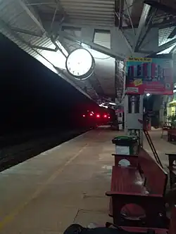 The station has only one platform and a single diesel broad gauge track.[5] The electrification of Konkan railway tracks was completed in March 2022[6] During the landslides that occurred in August 2019 at Padil-Kulashekar railway section in Mangaluru, several trains were terminated at Surathkal railway stations.[7][8] Again from 6-2-2023 to 3-3-2023 due to works carried between Padil and Jokatte section many trains were short terminated at Suratkal railway station, the trains were 12133/12134 CSMT- Manguluru Junction Express and Madgaon- Mangaluru Central Express (10107/10108).[9] There is an urgent need of constructing another platform at Surathkal railway station to handle such emergencies as well as increasing number of passengers. Rolling IN and Rolling OUT of RORO rakes are carried here.[10] The Surathkal railway station has a tea stall,ethnic food stall, waiting room and toilet for men and women at the platform.