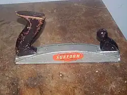 A surform tool (also surface-forming tool[1]) features perforated sheet metal and resembles a food grater. A surform tool consists of a steel strip with holes punched out and the rim of each hole sharpened to form a cutting edge. The strip is mounted in a carriage or handle. Surform tools were called "cheese graters"[2][3] decades before they entered the market as kitchen utensils used to grate cheese.[4][5] Surform planes have been described as a cross between a rasp and a plane.[6]