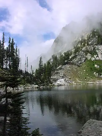 Surprise Lake is a lake in Grand Teton National Park, in the U. S. state of Wyoming.[2] Surprise Lake is on .20 miles (0.32 km) east of Amphitheater Lake and can be accessed via a strenuous climb of just under 10 miles (16 km) round trip from the Lupine Meadows trailhead.[3] The National Park Service has three backcountry campsites at Surprise Lake which are allocated by permit only.[4]