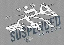 - A map of the facility and small tokens representing each robot. These were intended to allow the player to more easily keep track of each character's whereabouts in the somewhat confusing layout of the facility. Unlike most other text adventure games, the room descriptions of Suspended do not mention the directions of possible exits, which makes the map vital to playing.