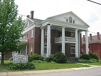 The house is a 2+1⁄2-story, brick Classical Revival style building on a sandstone foundation. It was originally built in the Greek Revival style. The front facade features a full 2+1⁄2-story, pedimented portico supported by Ionic order columns which was added during the 1909 remodeling. The exterior surface of polychrome Flemish bond brick was also added at this time.[2]