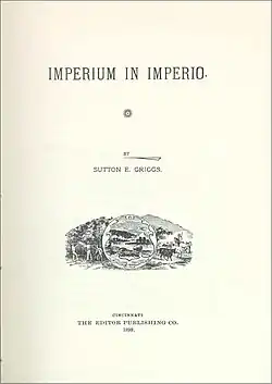 Sutton Elbert Griggs (June 19, 1872 – January 2, 1933) was an American author, Baptist minister, academic administrator, educator, publisher, and social activist. He is best known for his novel Imperium in Imperio (1899), a utopian work that envisions a separate African-American state within the United States. Griggs was African-American, and known for African American literature, and western fiction and wrote on social justice, racial segregation and integration. He served as president of American Baptist Theological Seminary (now American Baptist College).