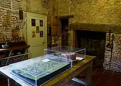 Machell, a successful businessman and member of the Clothworkers' Company,[6] used Sutton House as country retreat from his principal London home.[7] The rare, high-quality linen fold panelling[b] in the parlour is likely to have been installed during his time as owner.[9] Machell died in 1558 and the house passed to his wife Joan and his eldest son, also named John.[7] Machell the younger lacked his father's financial acumen, and eventually lost the house in the early 1600s to James Deane, a member of the Drapers' Company, after a series of legal disputes.[10]