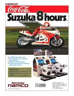 Coca-Cola: Suzuka 8 Hours[a] is a 1992 motorcycle racing arcade game developed and published by Namco. It is based on the homonymous real-world racing event. Players control a racer using a handlebar controller and must race against computer-controlled opponents while remaining in first place. It ran on the Namco System 2 arcade hardware. A direct sequel, Suzuka 8 Hours 2, was released a year later.