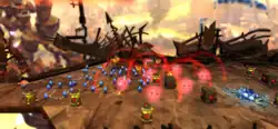 Swarm is an action-platform video game developed by Hothead Games and published by Ignition Entertainment for PlayStation 3 via the PlayStation Network and for the Xbox 360 via Xbox Live Arcade. The setting revolves around a flock of 50 blue bipedal creatures, dubbed swarmites, and their quest to collect DNA in order to save their race. The player controls the swarmites as a collective, but each swarmite has individual intelligence meaning interaction between the player and the swarm is always dynamic.