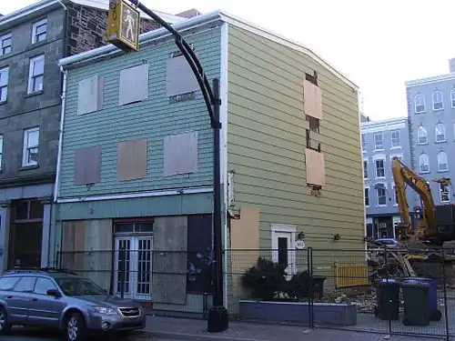 After boarding windows and demolishing exterior parts of the building on October 21, the entire building was demolished early Sunday morning, November 2, 2008.[11] Promoters of downtown development such as the Halifax Chamber of Commerce noted that the demolition and disputed development highlight the need for a more streamlined development process. Heritage advocates such as Heritage Trust of Nova Scotia pointed to the demolition as a sign of the weakness of municipal heritage designations and the lack of any heritage districts in downtown Halifax.[12]