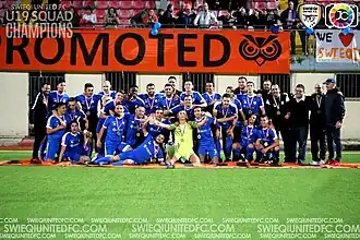 Swieqi United has an Under 19 (Minors) Squad which participates in the MFA Youth League. The Under 19s finished 4th in their first ever season in Section E and won the same competition the following year. They also finished 3rd in their maiden season in Section D. During the 2016–17 Season, the U19s achieved promotion to Section C winning the league in a convincing manner. Throughout the 2017–18 season, the club managed back-to-back promotions, this time beating Msida St. Joseph 6–1 on the final day of the season to ensure a historic promotion to Section B of the National Youth Competition. The Under 19s also managed to reach the Quarter-finals of the National Youth Cup for two successive seasons [throughout 2016/17 and 2017/18]. The Under 19s won Promotion to Section A in 2021–22. As of 2024–25, the Minors participate in Section B.