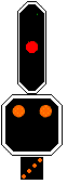 | Aspect 6 : Max speed 20 km/h, the next signal shows 'stop' and is at reduced distance. | ||