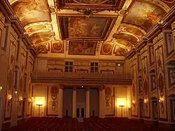 Jones suggests that the first performance venue may have been what is today called the "Haydnsaal", a large hall at the family palace in Eisenstadt "having a very resonant acoustic". Other candidates were somewhat smaller halls in the other primary Esterházy palaces, at Vienna and Kittsee.