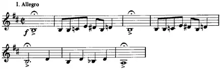 Excluding the E natural, the opening theme is made up of an octatonic subcollection which consists of the major and minor 3rd above the tonic. The alternation between major and minor thirds is found throughout the symphony, and is based on this opening theme.[7] The lyrical second theme in D major not only sets a contrast to the first theme, but also to present the cyclic elements evident in the whole work. This is very recognizable in the trio of the scherzo movement, and distantly echoed in the finale.[7] Maes states that the second theme is a protyazhnaya stylization, which he defines as "a splendid form of melismatically decorated song set to poetry of great expressive power and lyrical intensity."[13]