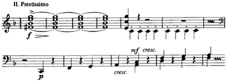 - ^ After a four bar introduction, a majority of the Scherzo proper is a continuation of quarter note figures passed throughout the orchestra in a "kaleidoscope of color."