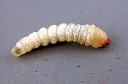 The life cycle of the golden sun moth is relatively well understood. Longevity is estimated to be about two years (Edwards 1994), however, genetic evidence suggests that generation time may actually be 12 months (Clarke 1999). After mating, it is believed that the females lay up to 200 eggs at the base of the Rytidosperma tussocks. The eggs hatch after 21 days. The larvae tunnel underground while feeding before digging a vertical tunnel to the surface, where the pupa remains for six weeks until maturation. Adult moths emerge from the soil between the end of October and mid January and are only active during the hottest part of the day (most males are only active at temperatures above 22 °C).[3] At this larval stage, the moth remains underground for two to three years, feeding on the roots of native perennial grasses including speargrass (Austrostipa spp.), wallaby grass (Rytidosperma spp.) and Bothriochloa. This is based on evidence of case pupa shells and tunnels connecting to nearby tussocks. Recent discoveries suggest that the larvae may also feed on introduced grass species, with the presence of cast pupa shells protruding from the introduced Chilean needle grass (Nassella neesiana) tussocks.